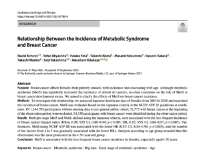 医師 北風政史先生と、弊社 明田健史が共同著者として参画した論文「メタボリック症候群とがんとの関係に関する臨床研究」がHeart & Vessels誌に掲載されました。